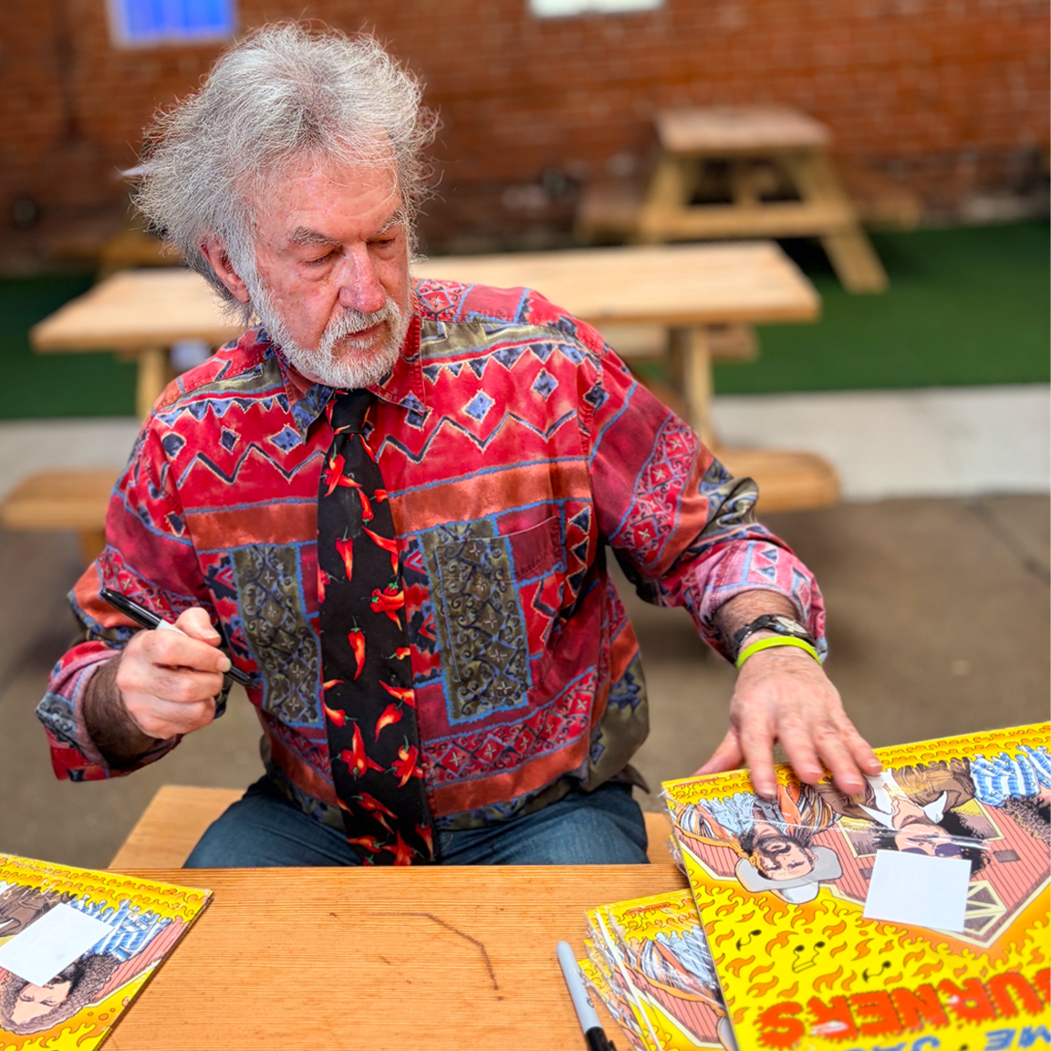 Ink meets vinyl. Bill Stout signing the ultra-limited color pressing/alternate cover of Handsome Jack—exclusive for Bomp Mailorder. Once these beauties are gone, they’re gone for good! GRAB YOUR COPY HERE